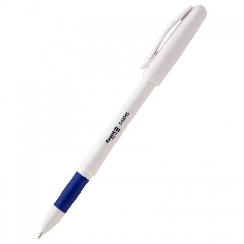 Ручка гелева Delta 2045 синя- бюджетный вариант, цвет чернил синий, имеет тонкий игольчатый стержень 0,5 мм ( сменный). Корпус изготовлен из белого непрозрачного пластика, декор  в цвет чернил. Имеет удобный прорезиненный захват (предотвращает скольжение).